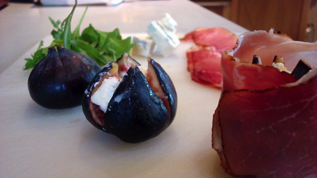 Home Grown Figs, Stuffed with Irish Blue Cheese, Wrapped in Serrano Ham and Honey in the making.