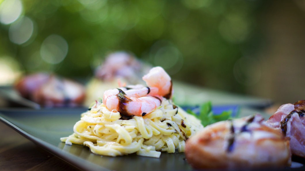 Prawns and Tagliatelle.